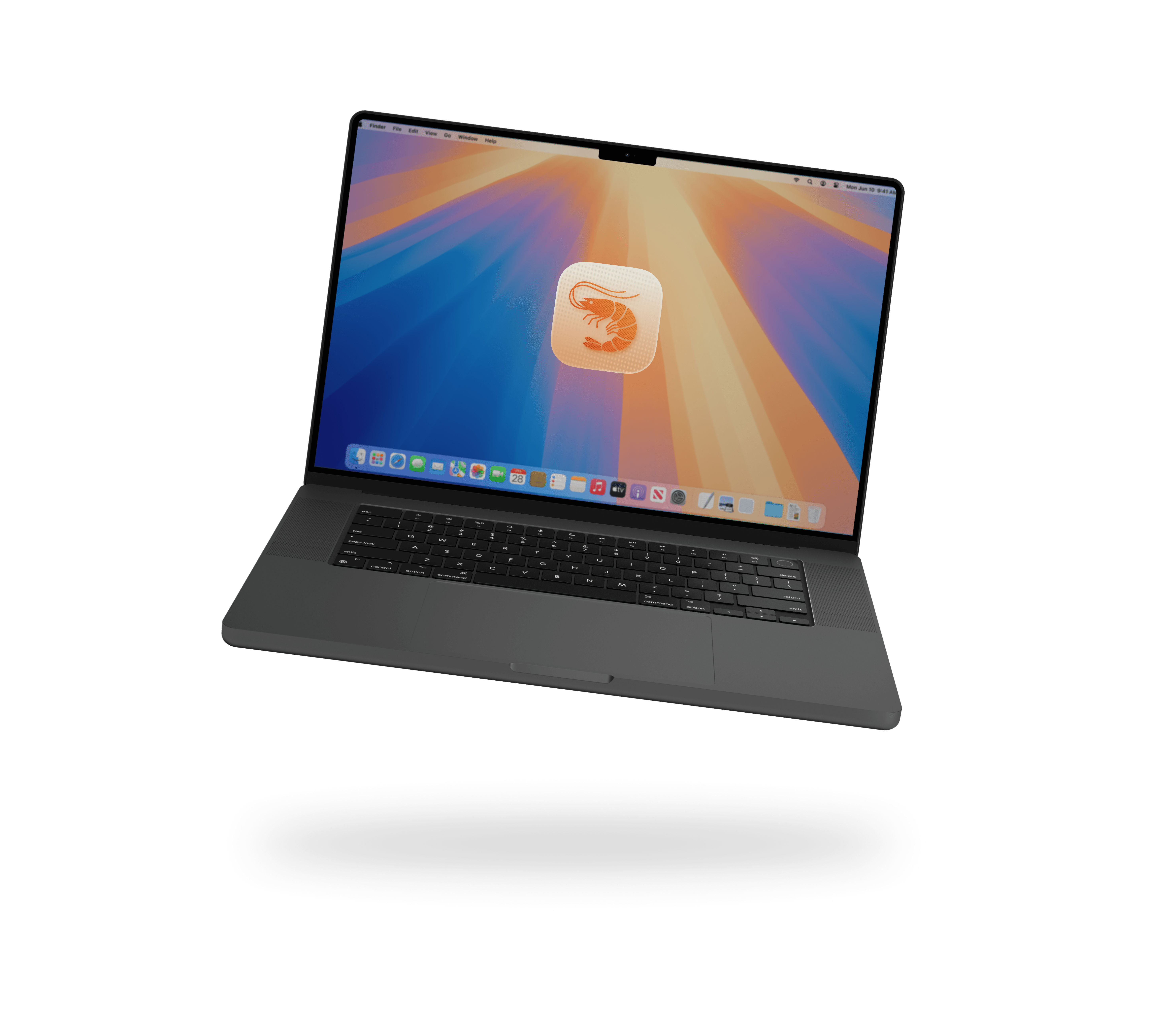 What happens on your Mac, stays on your Mac. No cloud, no tracking, just you and the Shrimp.